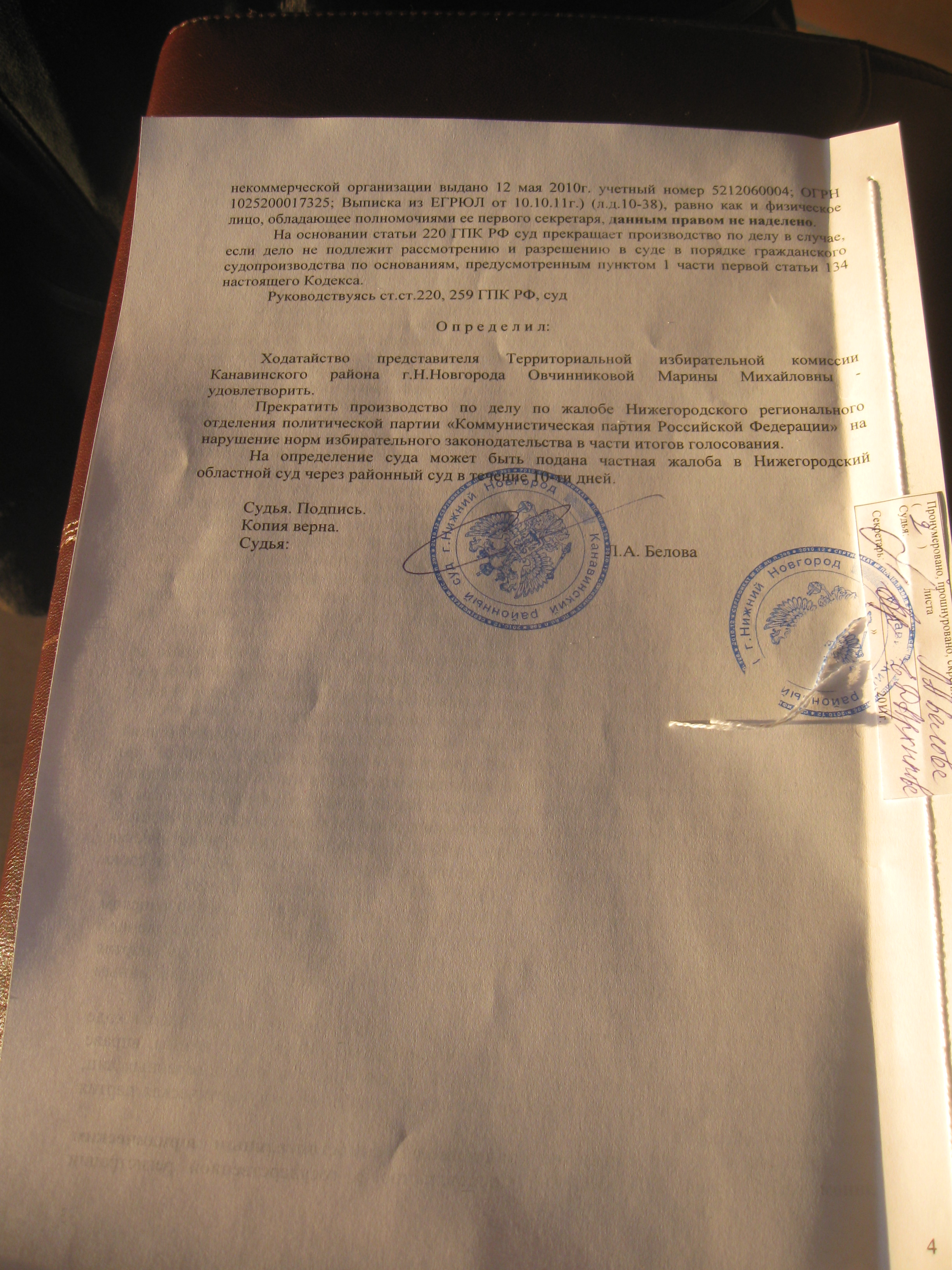 15 декабря состоялось судебное заседание по фальсификации итогов выборов в Канавинском районе.
